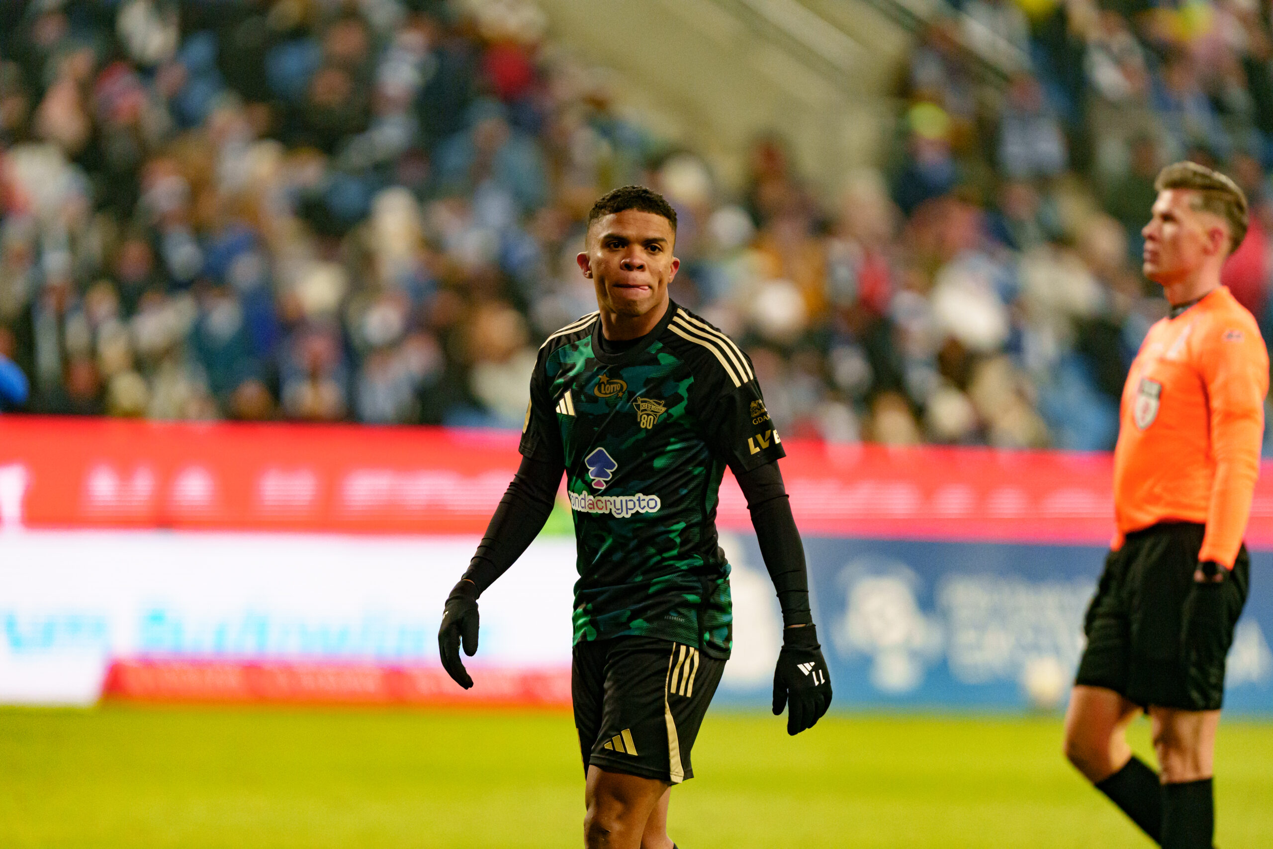 Po zmianie stron gospodarze dostali prezent – szybkie 2:2 padło po akcji wzdłuż bramki i samobójczym trafieniu Mateja Rodina (47’). Motor wyraźnie złapał wiatr. Z kolei Lechia przez moment wyglądała na zbitą, bo w jej grze pojawiły się nerwy i proste błędy. Decydujący zwrot przyszedł w okolicach 70. minuty. Po analizie VAR sędzia Paweł Raczkowski wskazał na „jedenastkę” – uznano, że w polu karnym doszło do przewinienia na Rodinie. Mena wykorzystał rzut karny (74’) i Lechia wróciła na prowadzenie 3:2. Na boisku zrobiło się wtedy gorąco.